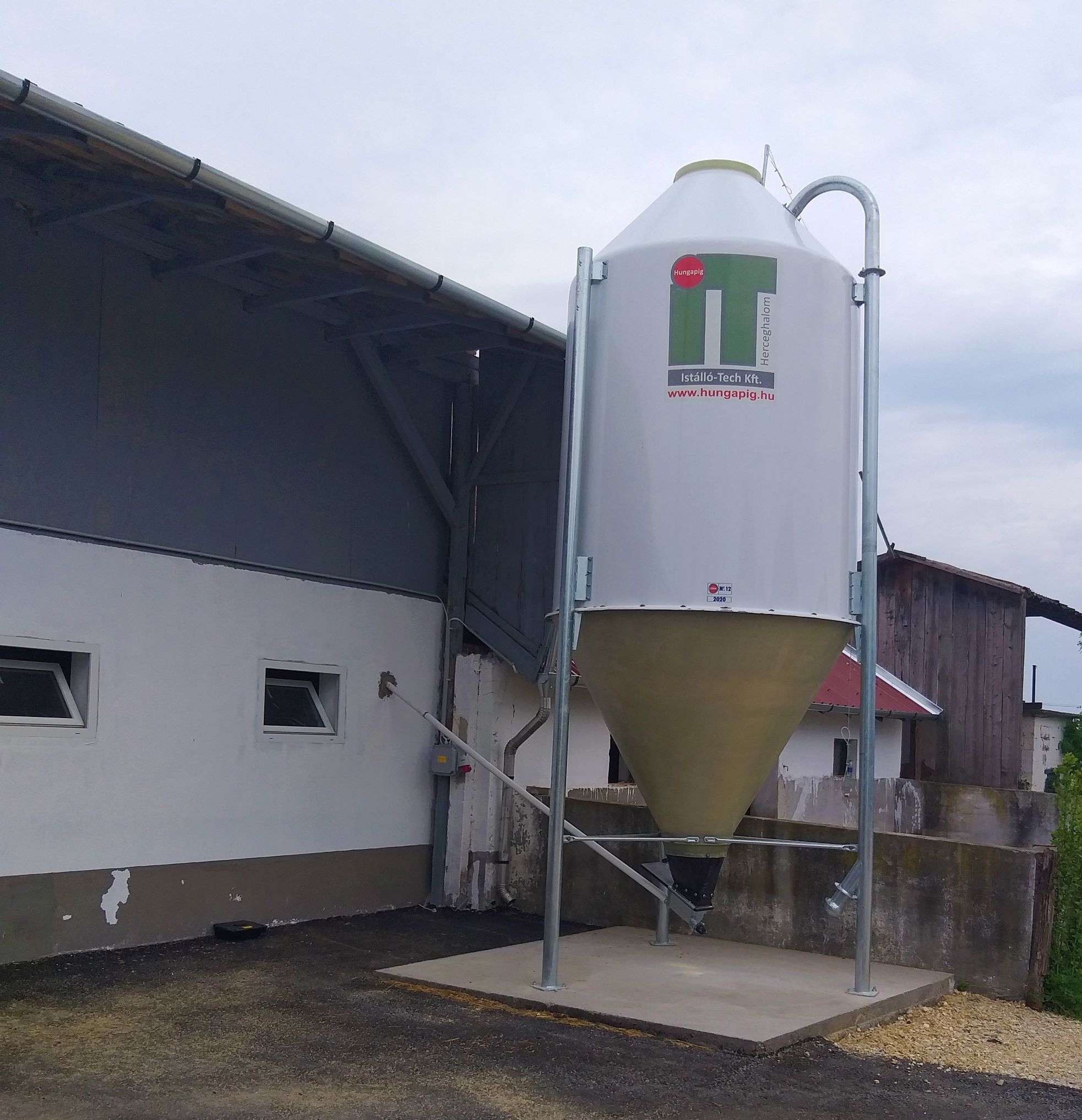 7 tonnás, 12 m3-es takarmánytároló silók, behordórendszer és önetetők partnerünk mezőtárkányi telepén